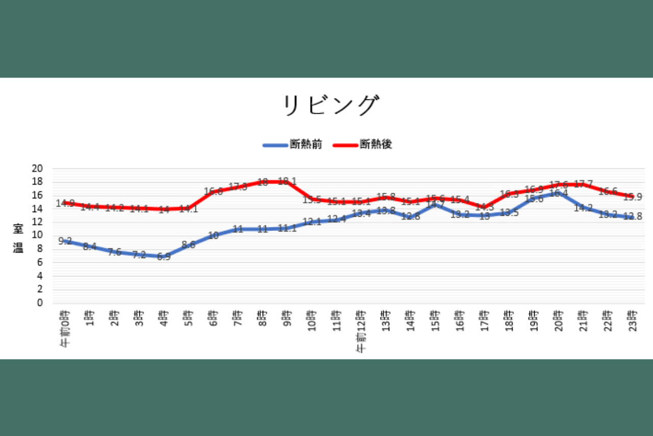 断熱リフォーム前と後の室温を検証しました。グラフをご参照ください。