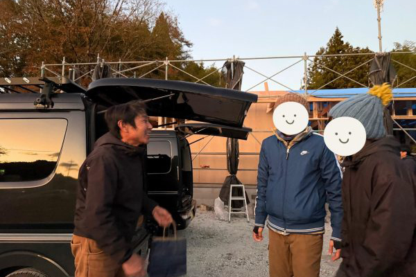 建ちあがったお家の前でメッセージをいただいて、とても感動する光景でした。