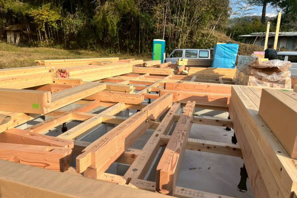 基礎と建物をつなぐ「土台伏せ」を終えたあとは、