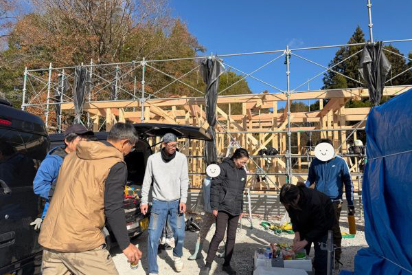 大工さんが作業を進める隣で、お施主様も一緒につくる家づくり。