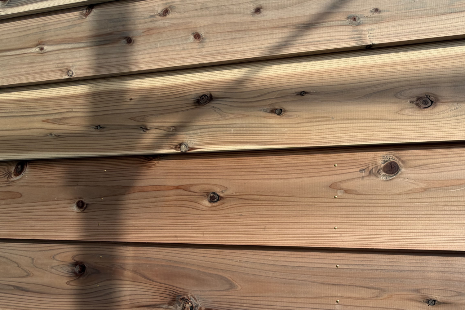 杉は自然素材のため、紫外線や雨風の影響を受け、年月とともに色合いが変化していきます。その変化は均一ではなく、場所や環境によって表情も異なります。