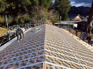 そして雨水の侵入を防ぐ防水シート「ルーフィング」を施工。