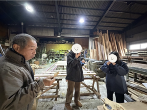 冬の工場で作業中の一コマ。